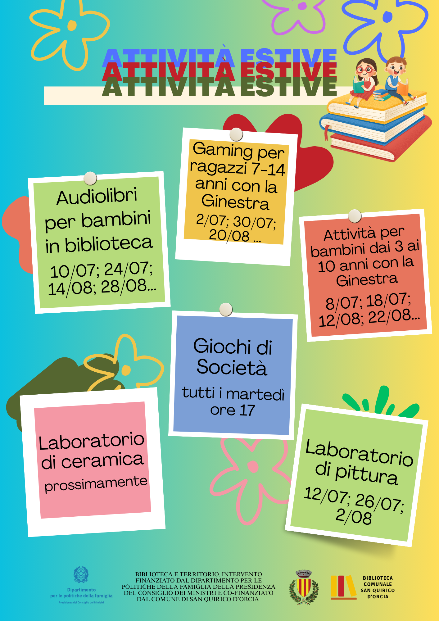 Con la fine dell’anno scolastico, le agognate belle giornate e il maggior tempo libero di bambini e ragazzi, considerato l’impegno messo in campo negli ultimi 5 anni, abbiamo pensato ad un ricco calendario di appuntamenti in Biblioteca e non solo!